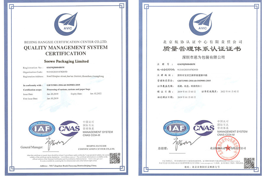 The standard of box is strictly made as per ISO9001, FSC, CE, Great Wall standard.